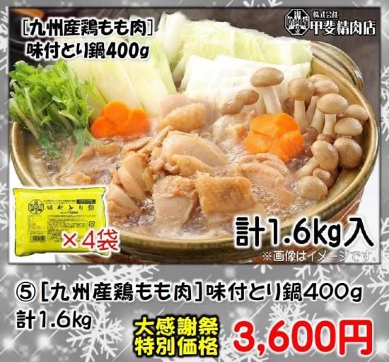 [九州産鶏もも肉]味付とり鍋400g×4袋